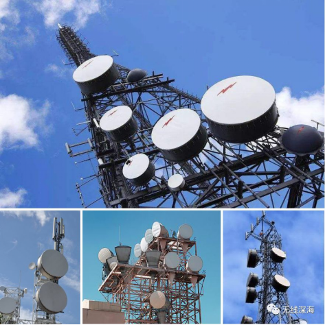 下面的这些“锅”就要小一些了,这就是用于收发微波信号来传递信息的微波天线。微波这类电磁波的波长很短,主要以直线传播,收发天线要相互对准才能工作,在无线通信中主要用作传输。