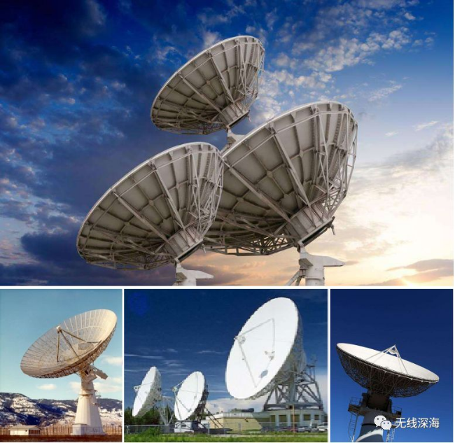 下面这张图是用于雷达的抛物面天线,就像一个个巨大的锅一样,蔚为壮观。雷达在发射时须把能量集中辐射到需要照射的方向,这个形状是非常适合的。
