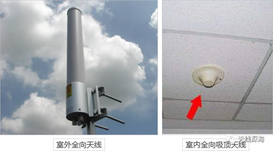 既然有定向天线,必然也会存在全向天线。顾名思义,全向天线可以360°无死角收发信号,室外全向天线,以及用于室内覆盖的吸顶天线。