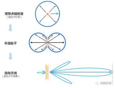 半波振子把电磁波源源不断地向空间传播,但信号强度在空间上的分布却并不均匀,像是轮胎一样的环形。