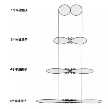 那么怎样拍扁呢?答案就是增加半波振子的数量。多个振子的发射在中心汇聚起来,边缘的能量的到了削弱,就实现了拍扁辐射方向,集中水平方向能量的目的。