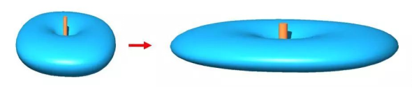 根据能量守恒原理,能量既不会增加也不会减少,如果要提高水平方向的发射能量,就要削弱垂直方向的能量。因此就只有把标准半波阵子的能量辐射方向图拍扁了,如下图所示。